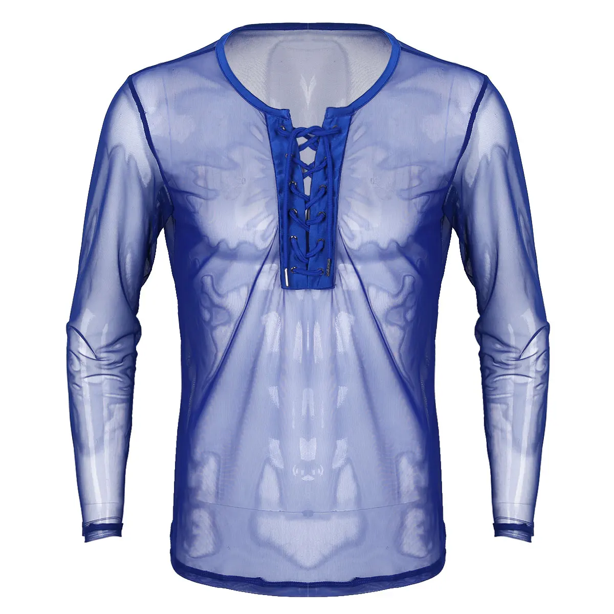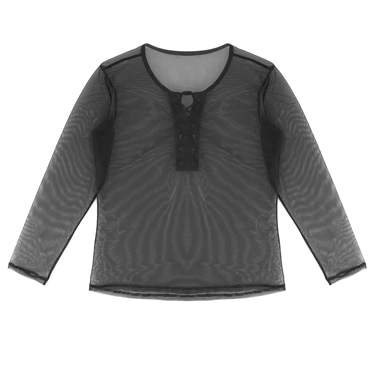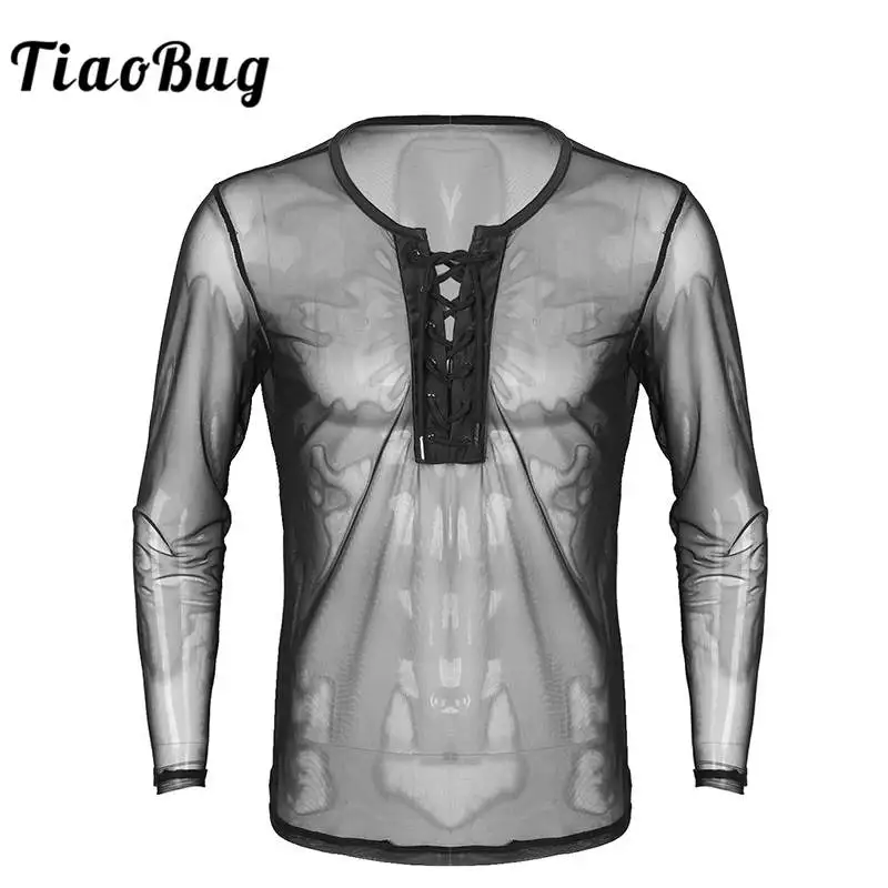 Мужская сетчатая Просвечивающая футболка TiaoBug с длинным рукавом, Мужская сексуальная клубная одежда, костюмы, нижнее белье, верх