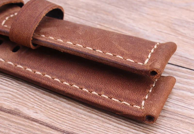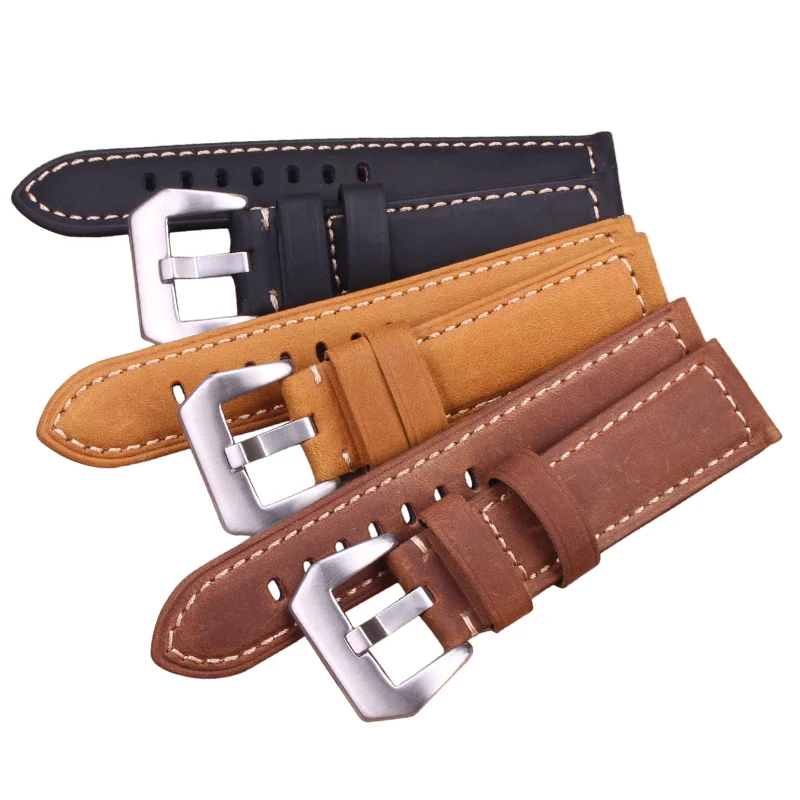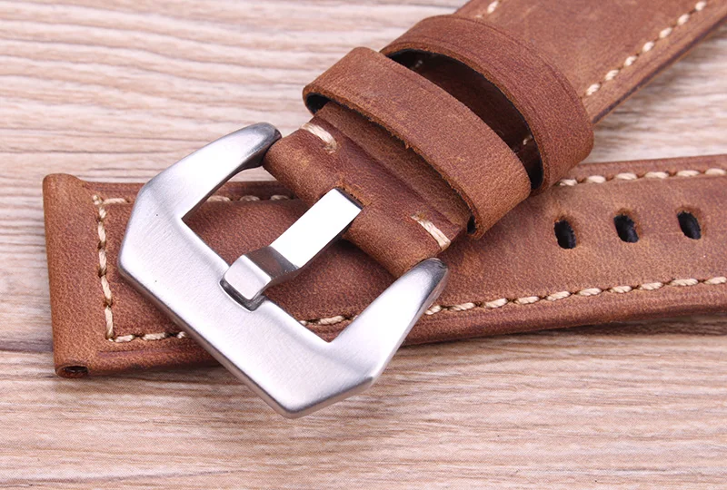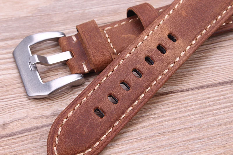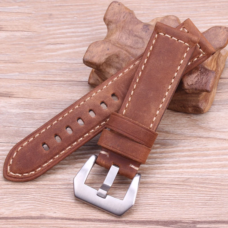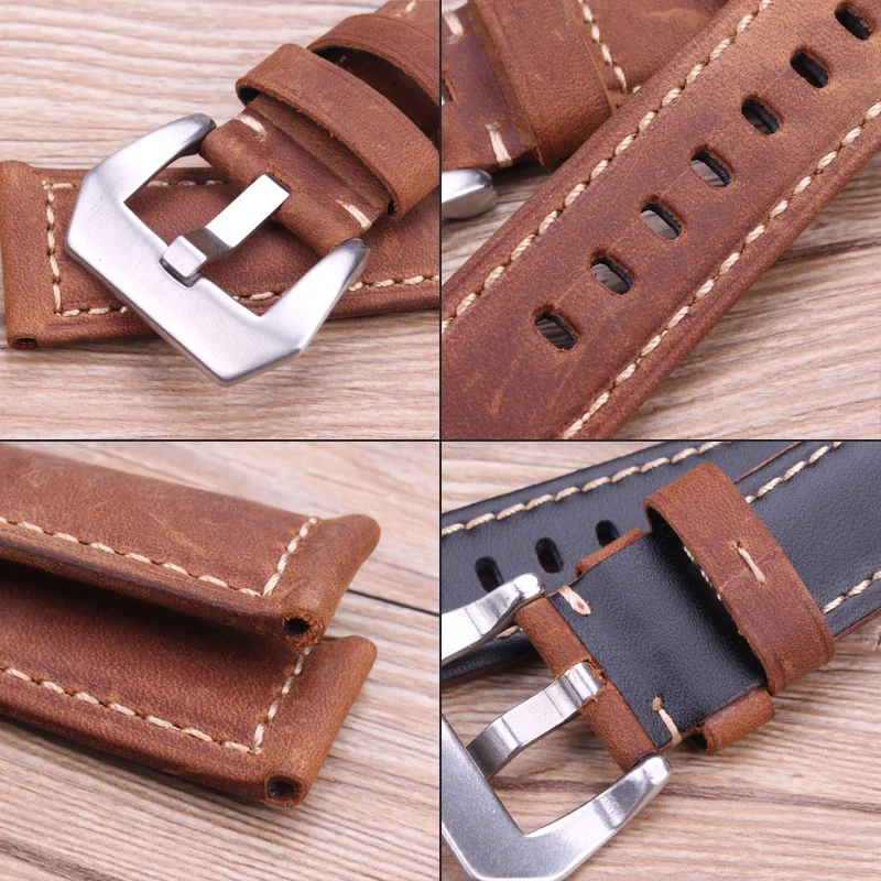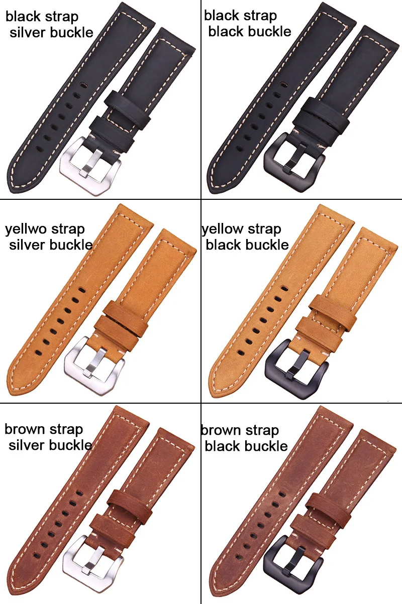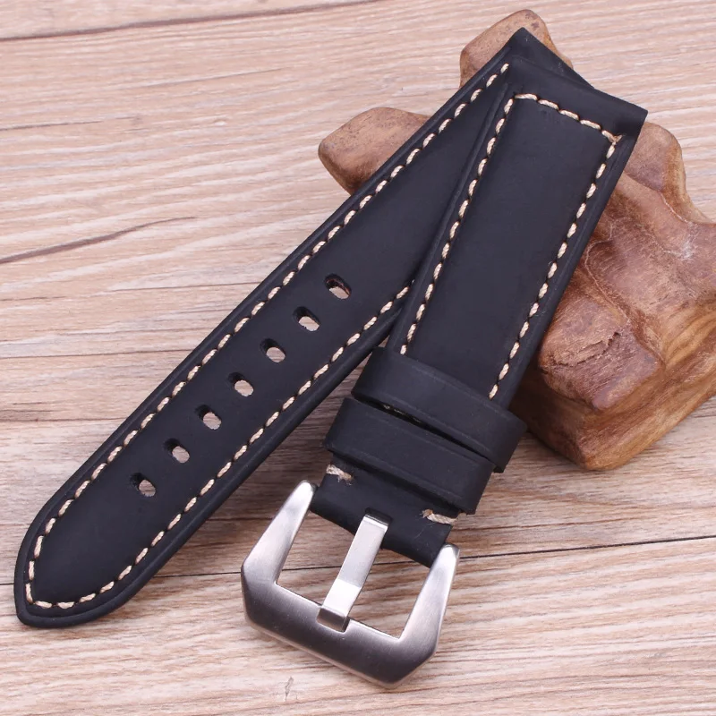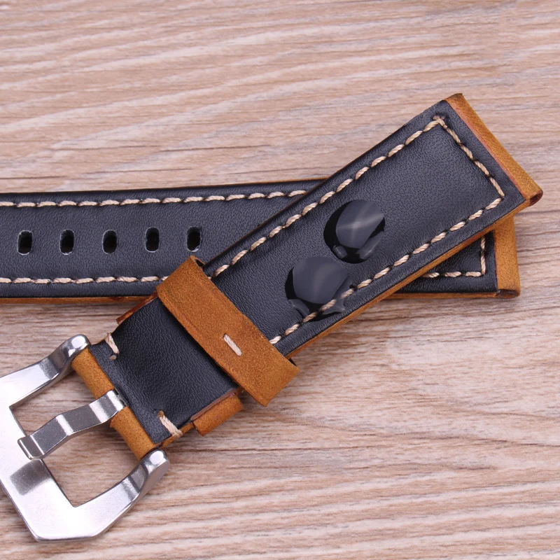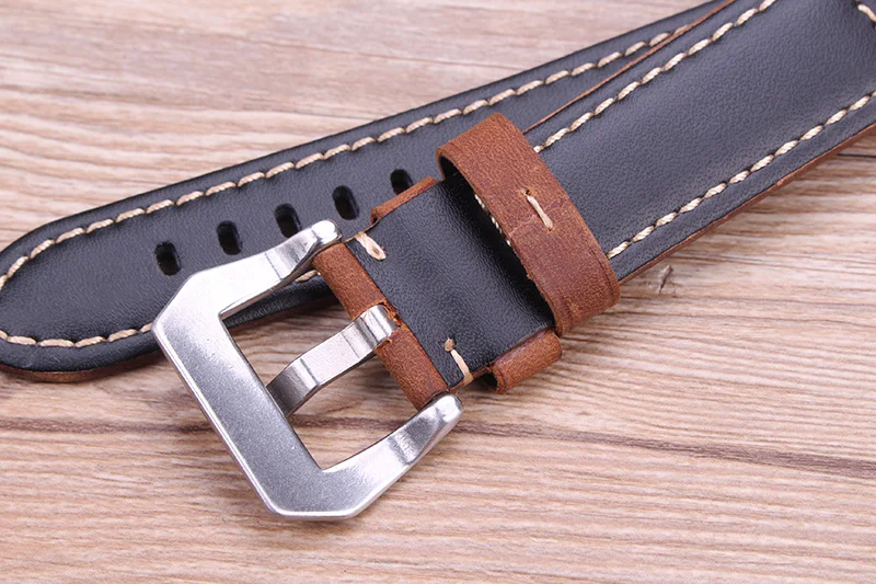 Итальянский ремешок для часов ручной работы из натуральной кожи 22 мм 24 мм для пам, винтажный ремешок для часов, ремешок с серебристой черной пряжкой из нержавеющей стали