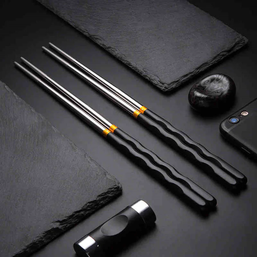 1 пара 304 бытовые Нескользящие палочки для еды из нержавеющей стал...