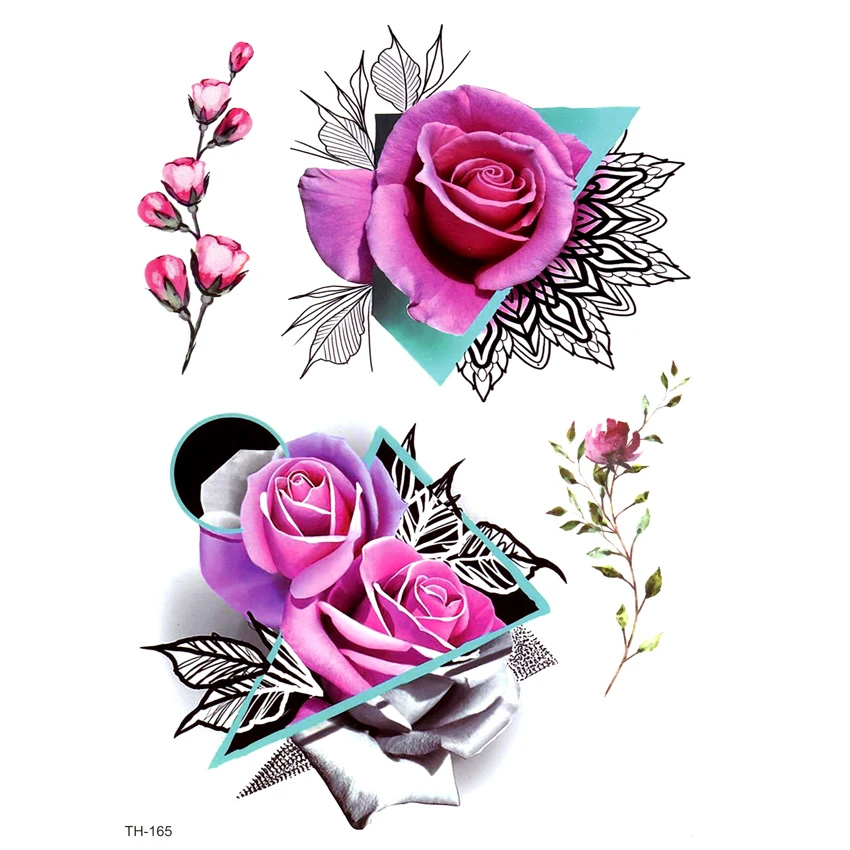 5 шт., розовые розы, водонепроницаемые Временные татуировки для мужчин, перышки, красота, цветок, поддельные татуировки, Временные татуировки, Prueba De Agua Tatoo