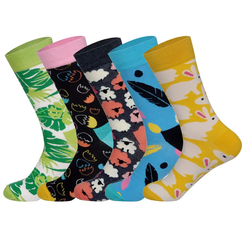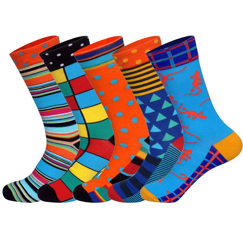 LIONZONE 5 партлот Брендовые мужские носки 60 цветов 12 выбранных в британском стиле уличная одежда дизайнерские Веселые носки забавные с подарочной коробкой