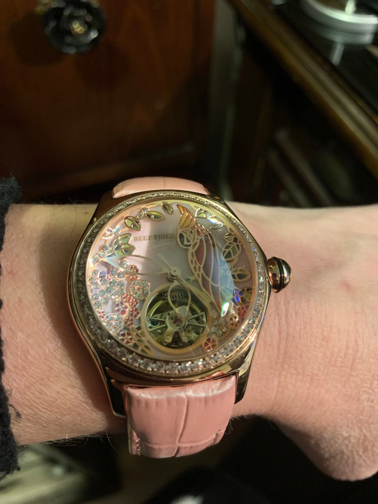 Только что получил часы, абсолютно потрясающий и красивый дизайн, даже в реальности. Очень доволен покупкой, он держит его, он чувствует себя роскошно, и это отличные часы для коллекционеров часов, таких как я, с такой ценой, я не мог попросить больше