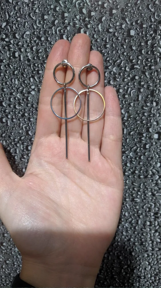Отличные серьги, эффектный вечерний вариант. Сделаны аккуратно, без царапин, шероховатостей и прочих нюансах. Пришли в мягкой упаковке и в полиэтиленовом пакетике, но не славились. Размер такой, на который я рассчитывала. Продавец положил в подарок салфетку для чистки бижутерии. Единственное - вертикаль в на одной серьге находится впереди колечка, а в другой сзади. Но, возможно, это такой дизайн: асимметрия в моде сейчас. Продавец отправил посылку быстро, доставка тоже быстрая. Серьги шли меньше месяца!!!! Однозначно рекомендую и товар, и продавца)