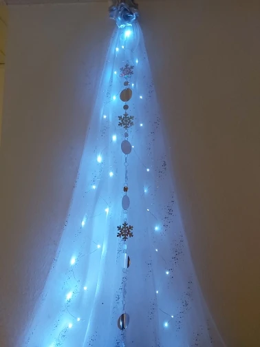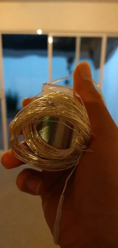 Подсветка выглядит отлично и не занимает много времени. Он имеет только одно положение, теплый свет и выглядит отлично. Они почти прозрачные серебристые провода и приносят достаточно светодиодов (100). Просто положите на него трансформатор, если вы хотите подключить его непосредственно к вилке (он не включен, я купил его отдельно).