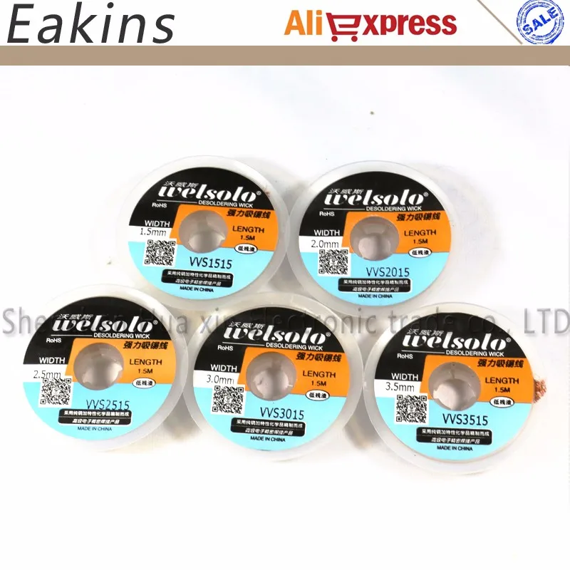 Оплетка для припоя WELSOLO, 5 шт.лот, всасывающая леска, длина 1,5 м, фитильАксессуары для пайки