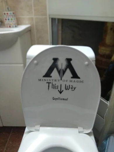 Прикольная наклейка. Наклеела на бачек унитаза, муж испугался:)