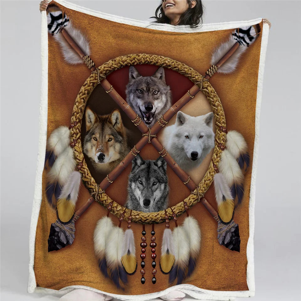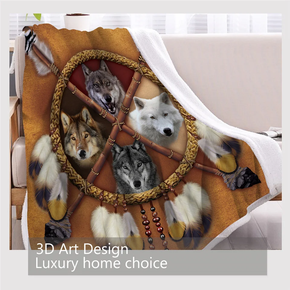 Летнее Флисовое одеяло с изображением волка, 150x200