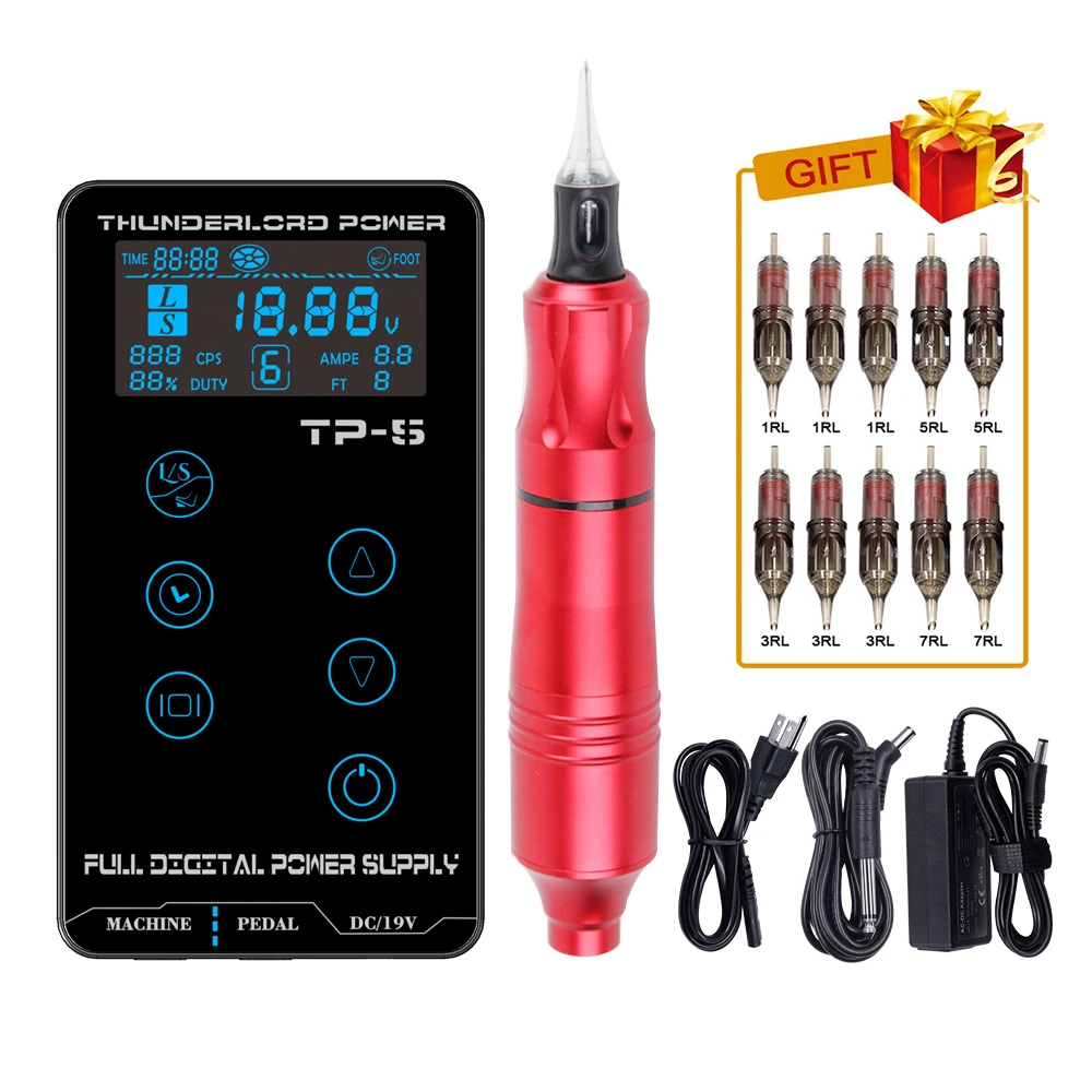 Вращающаяся ручка с картриджами Biomaser, TP-5, полный комплект машины для татуировки, иглы, тату-пистолет, профессиональный блок питания для татуировок