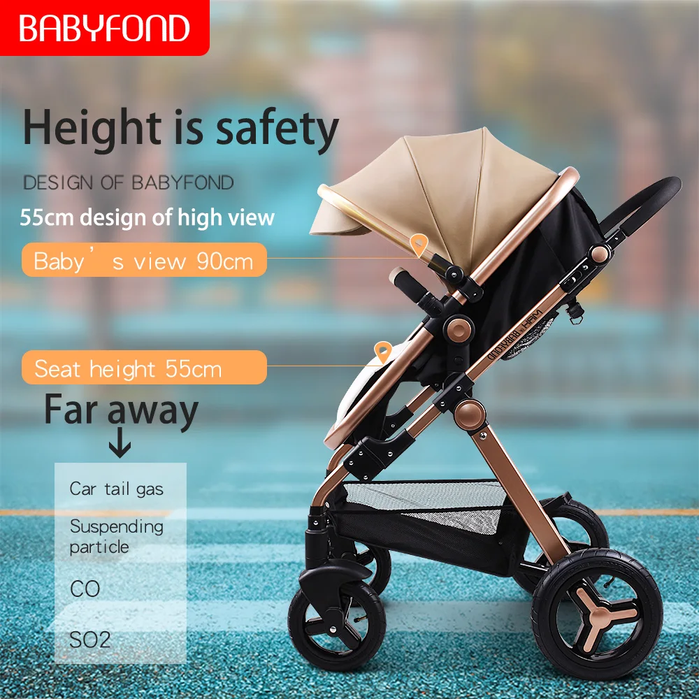 Детская коляска 3 в 1, роскошная Складная коляска с высоким ландшафтом, из полиуретана, двухсторонняя, с автомобильным сиденьем