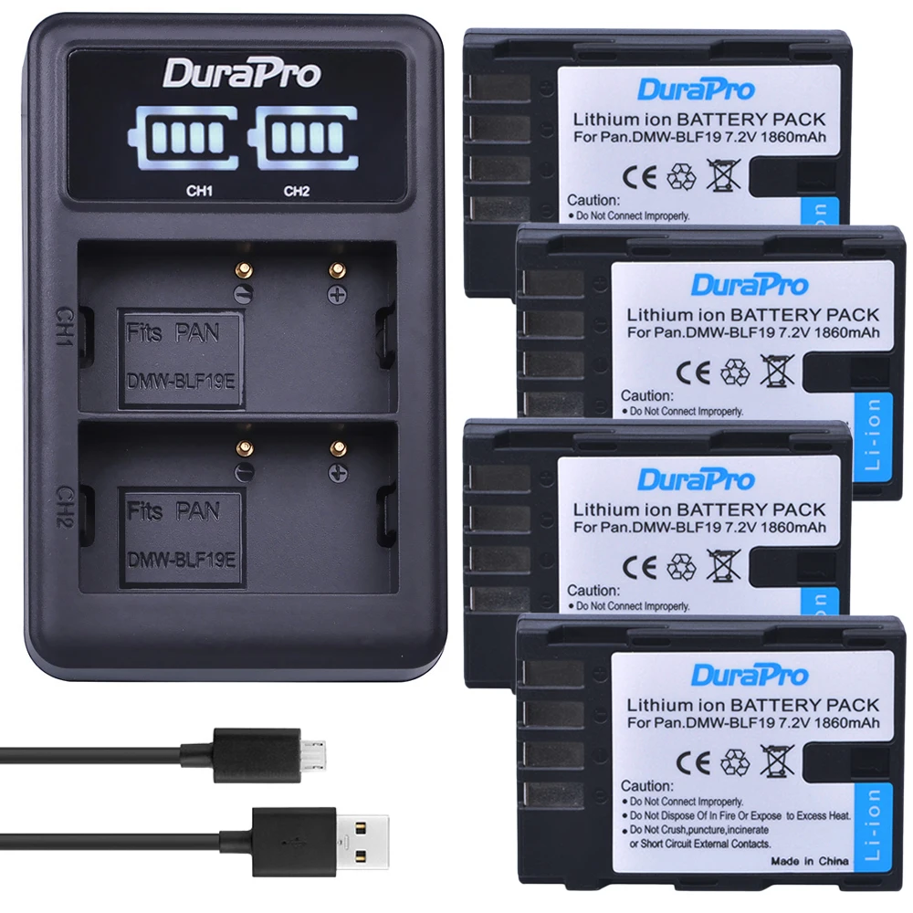 4 шт. 1860 мАч DMW-BLF19 DMW BLF19 батарея для камеры + LED USB зарядное устройство для Panasonic Lumix GH3 GH4 GH5 DMC-GH3 DMC-GH4 G9