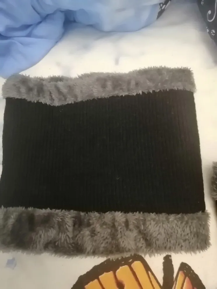 теплая шапочка и шарфик с искусственным мехом внутри…