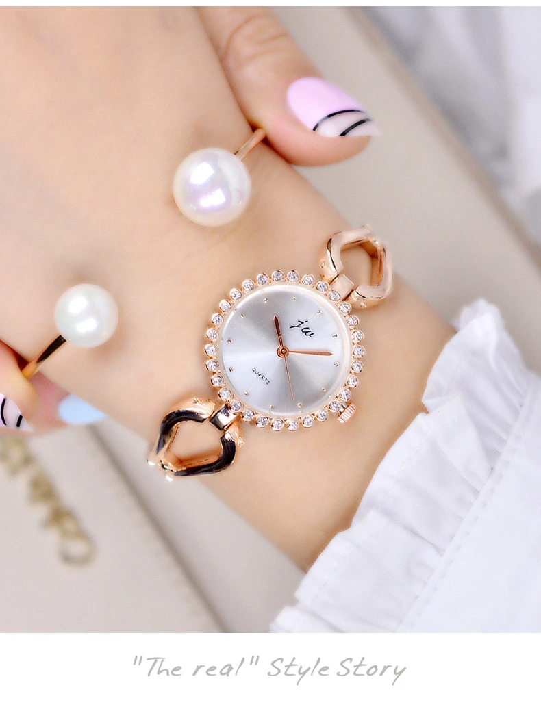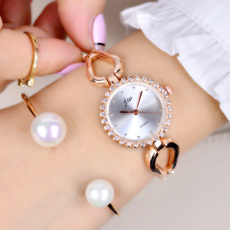 Женские кварцевые часы из нержавеющей стали, с кристаллами