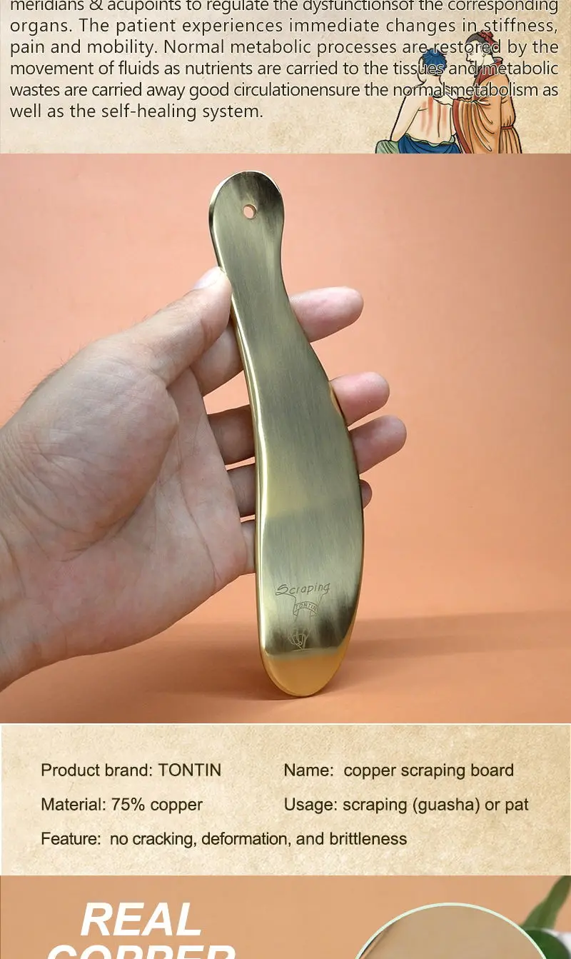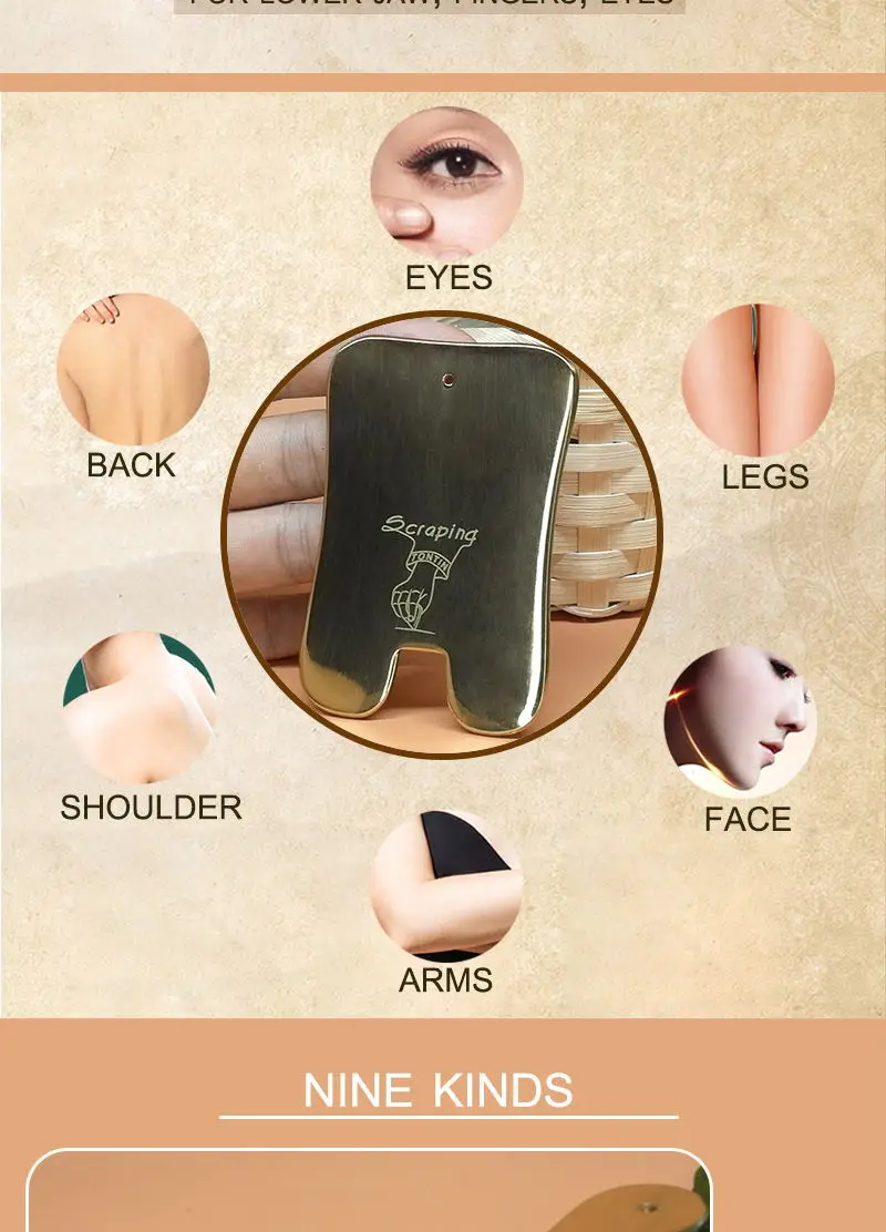 Инструмент Для Массажа Гуаша Tontin, Медная доска-скребок для удаления краски, морщин, массажер для лица