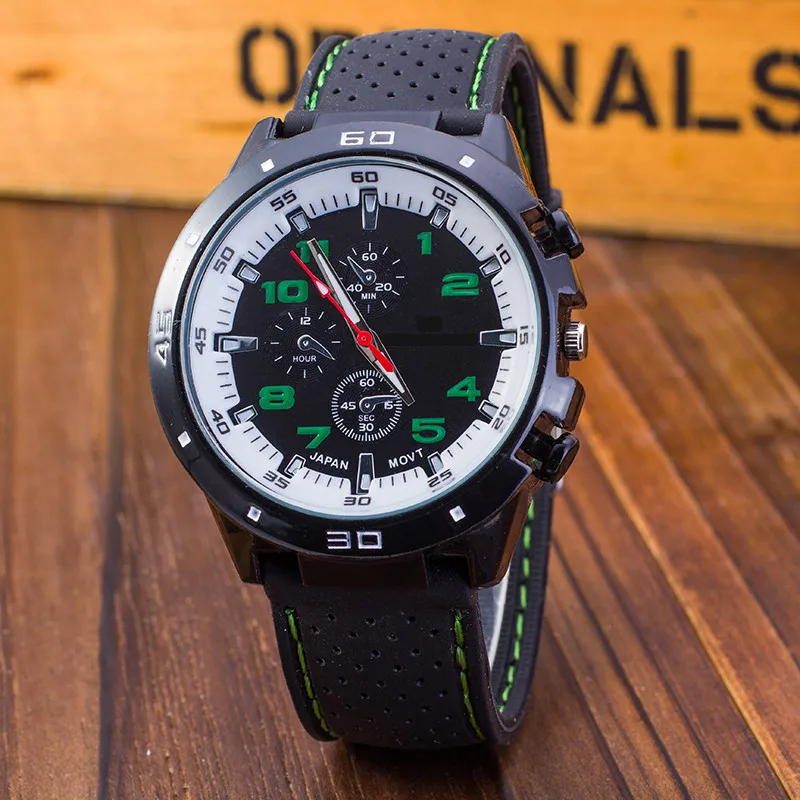 Часы мужские кварцевые, спортивные, с силиконовым ремешком