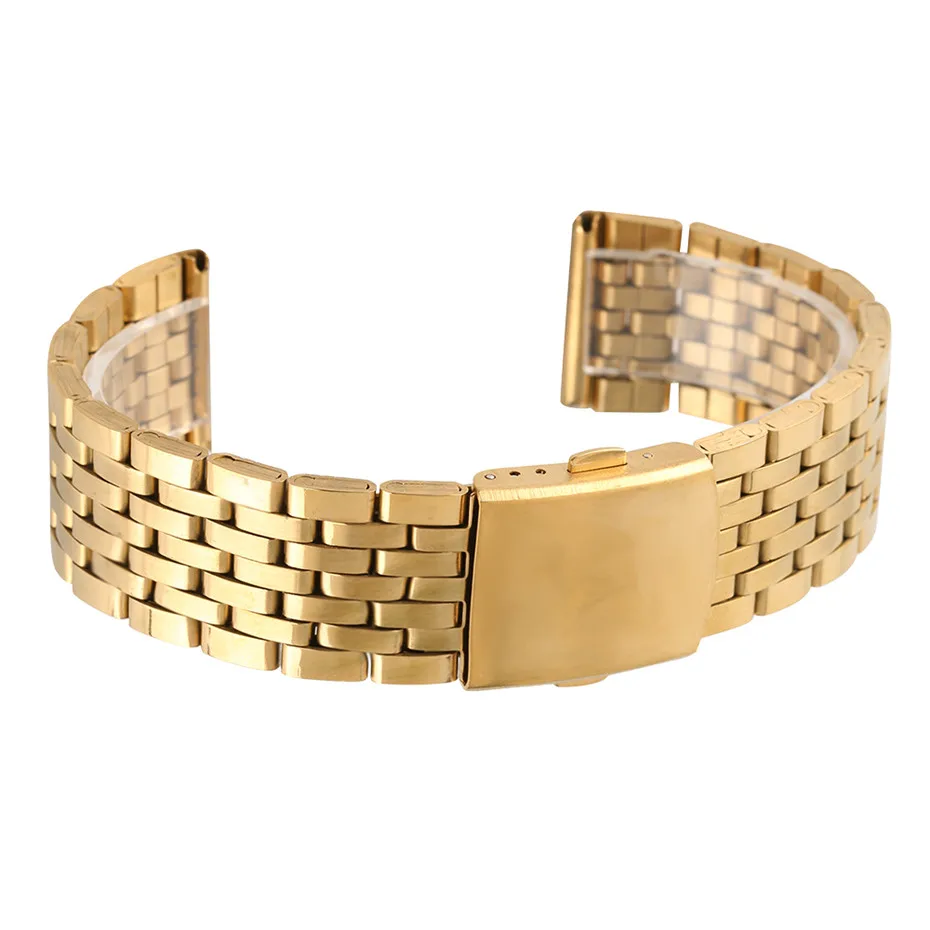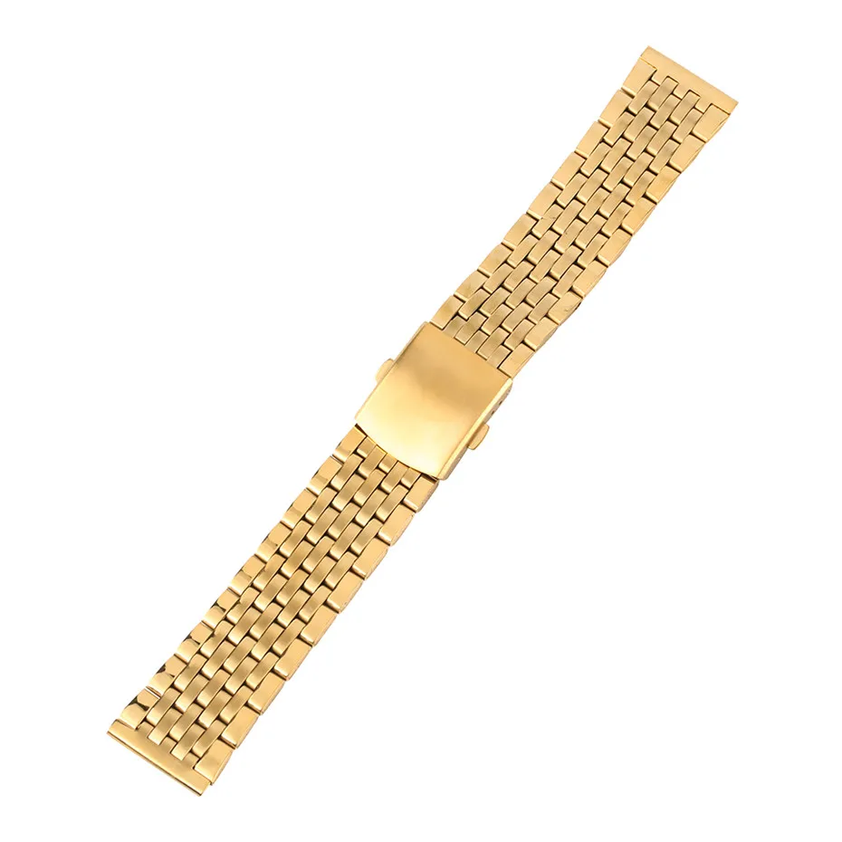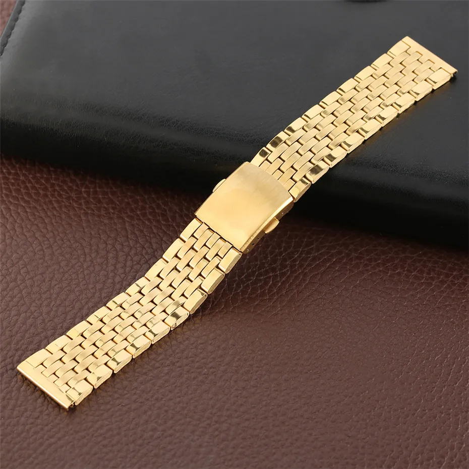 Ремешок из нержавеющей стали для мужских и женских наручных часов, сменный Браслет с безопасной застежкой, цвет золотистый, 182022 мм, с отверстиями