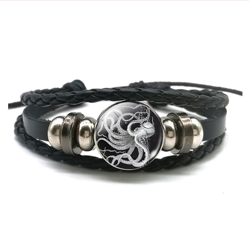 Браслет для морской черепахи, осьминог, Дельфина, морская черепаха, морская звезда, стеклянные бусины, браслет на пуговицах, панк стиль, для мужчин и женщин