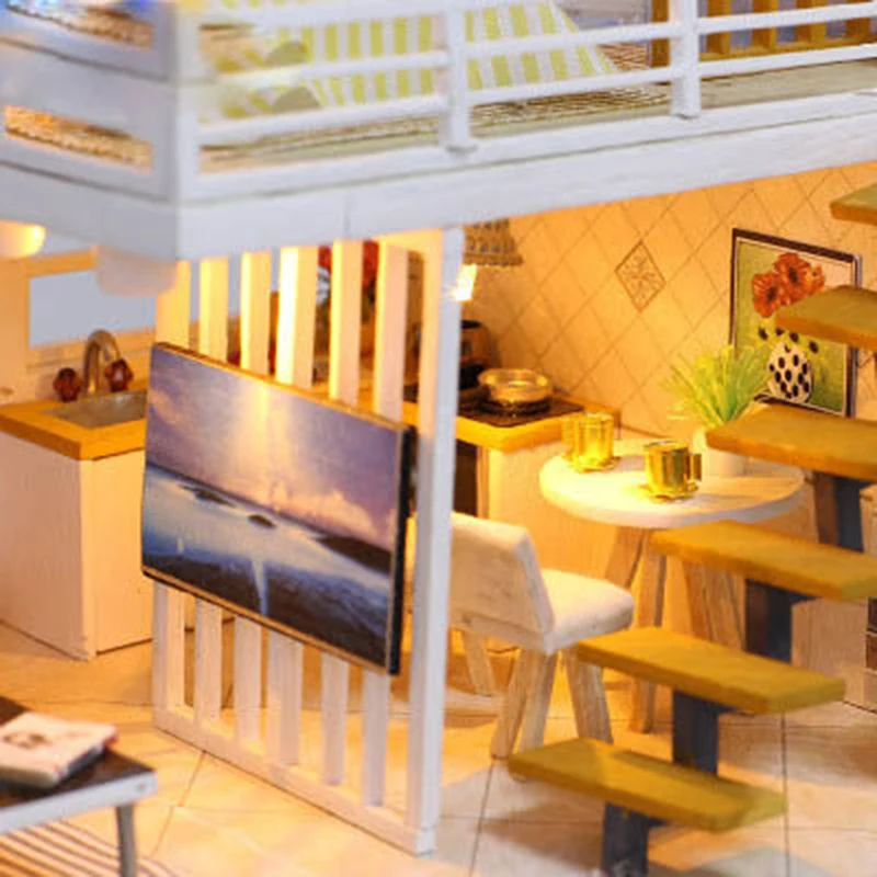 Кукольный домик сделай сам, игрушечный деревянный миниатюрный кукольный домик, миниатюрные игрушки для кукольного домика с мебелью, пылезащитный чехол, подарок на день рождения K031