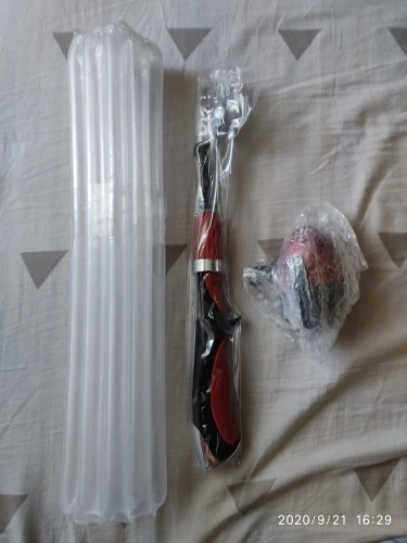 Товар дошёл за полтора месяца, упаковано очень хорошо, дошло целым. Сразу не заметил, но после двух складываний удочки отошли два кольца (не проблема, подклеим). Удочка компактная, лёгкая, легко помещается в сумку. С катушкой идёт леска. Как будет в деле проверить не могу, не сезон. Летом проверю и дополню отзыв. Продавцом доволен, рекомендую.