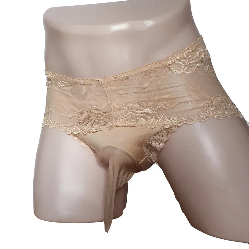 Стринги мужские, кружевные, шелковистые, с отделкой для пениса, фетиш, сексуальное нижнее белье, размера плюс
