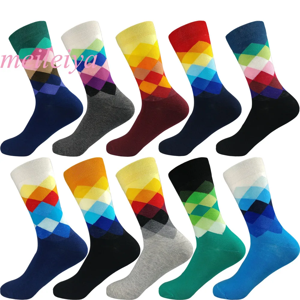 Мужские хлопковые носки MEILEIYA, 1 пара = 2 пары в стиле Харадзюку, хлопковые носки высокого качества, теплые клетчатые носки без пятки