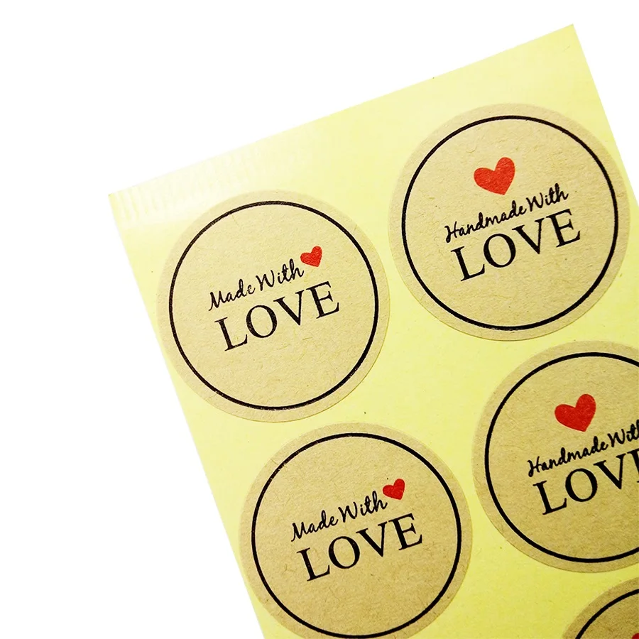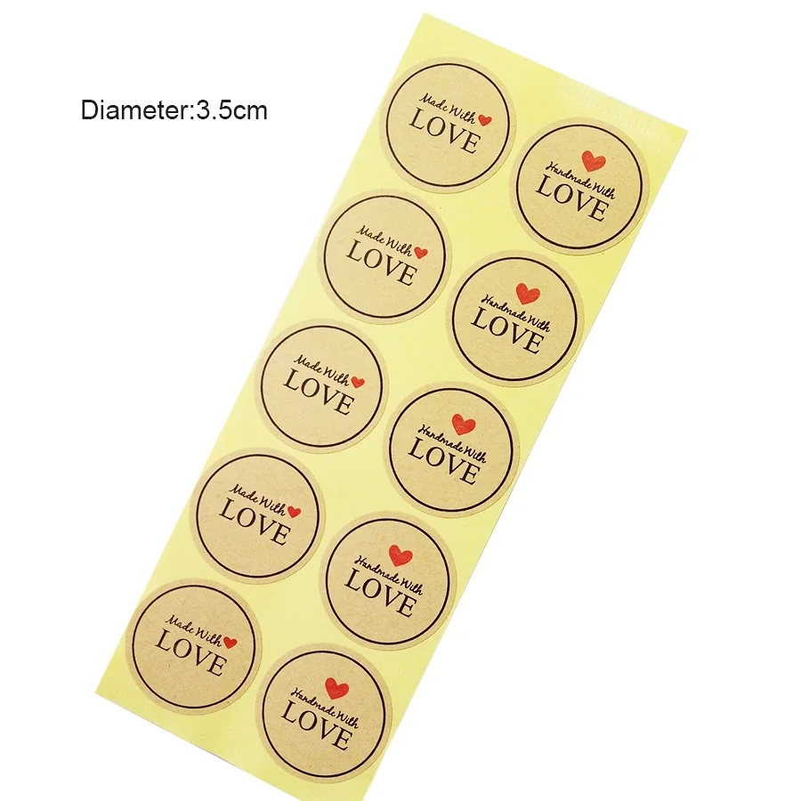 100 шт.лот красное сердце ручная работа с любовью Скрапбукинг этикетки из крафт-бумаги наклейки на конверты подарочная упаковка Уплотнительная наклейка