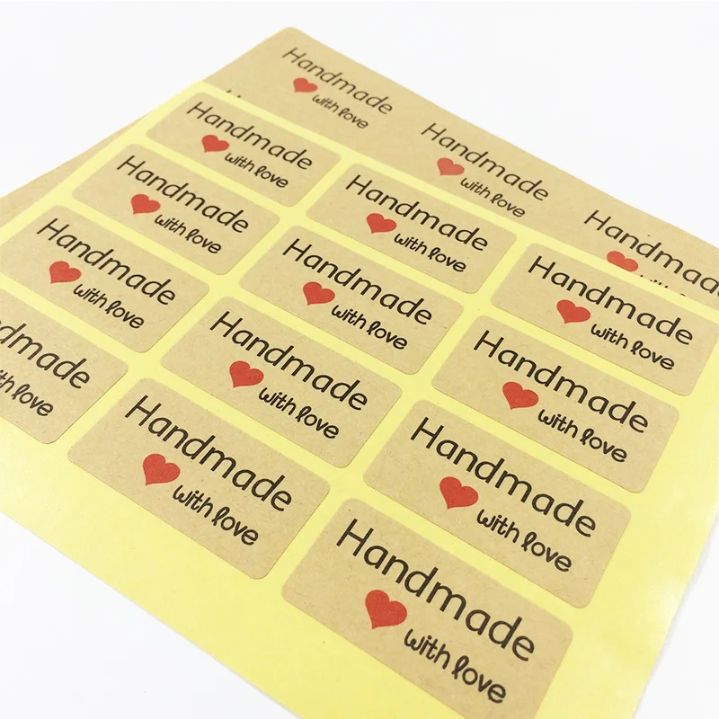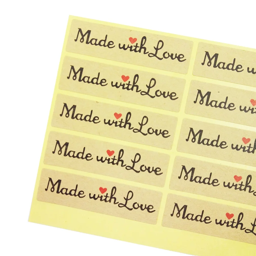 120 шт.лот, ручная работа с любовью, крафт-бумага, сердца, наклейки...