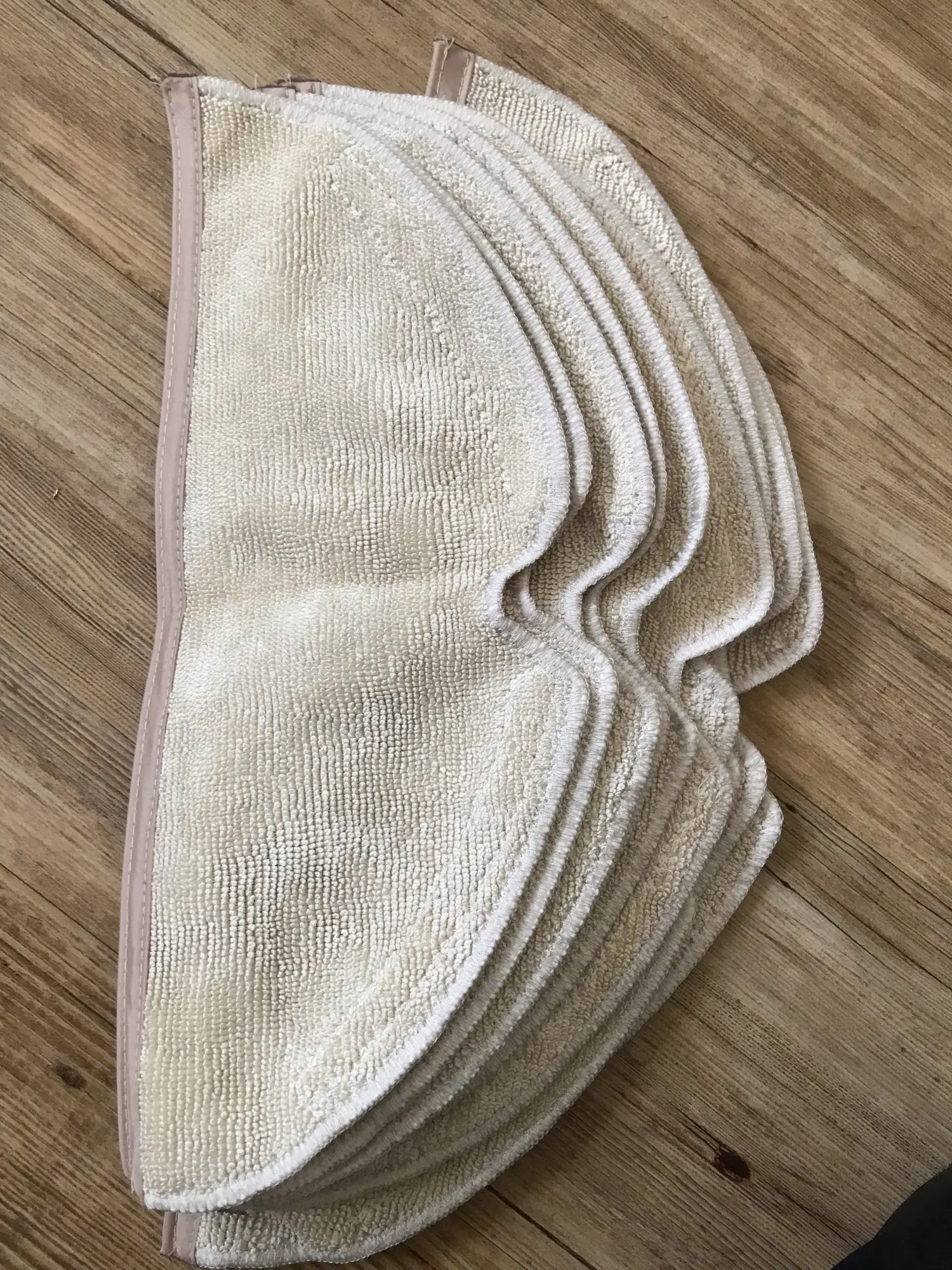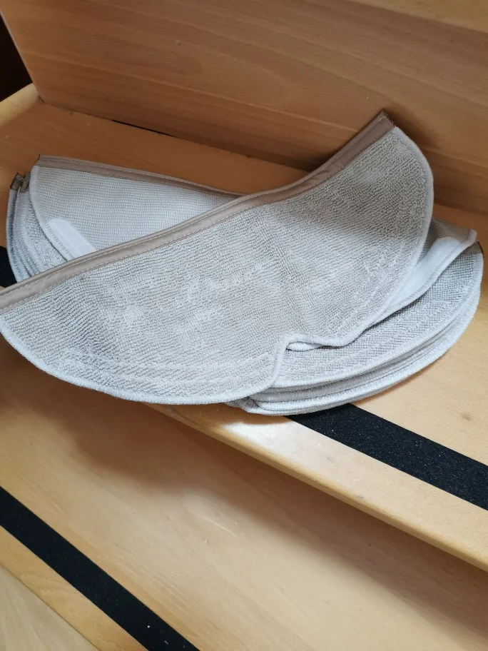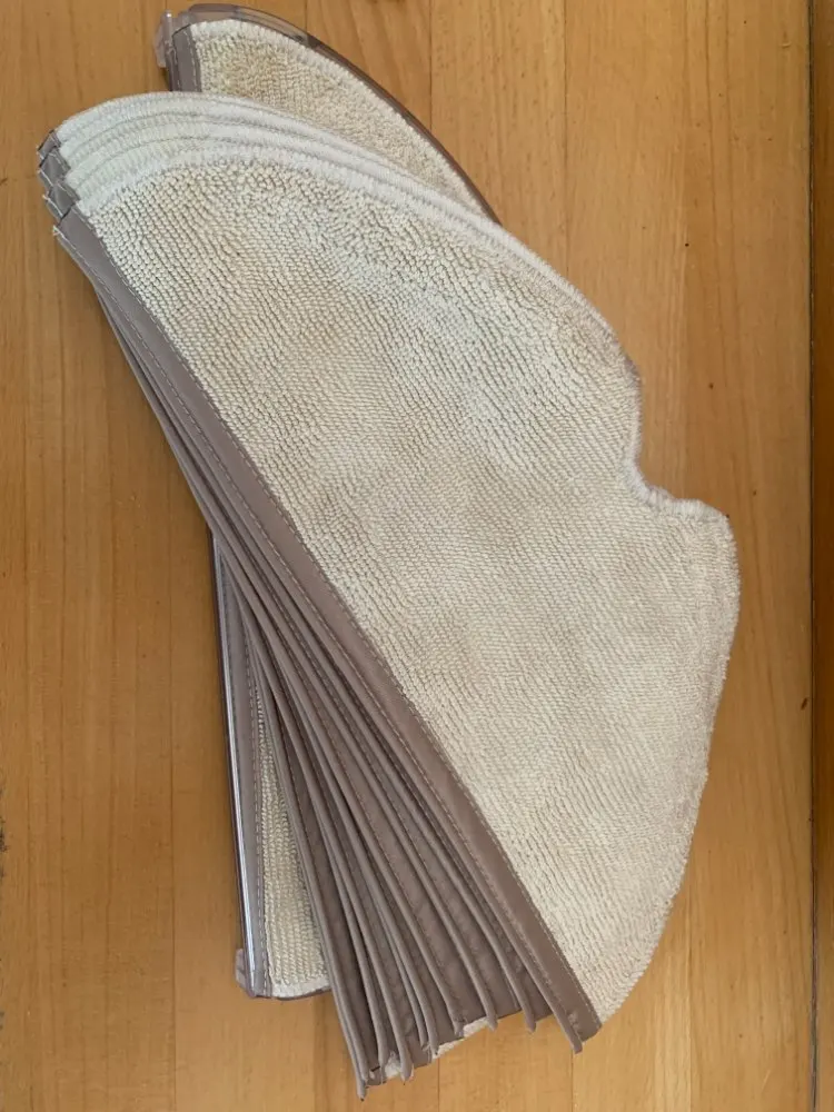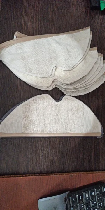 тряпки на на roborock s5 подходят. совсем немного отличаются размером от оригинала, но при натяжке со всех сторон ложатся хорошо. ткань на ощупь как оригинал. через день -два приходится мыть с мылом, появляется запах затухлой гнилятины. взял много, дабы часто менять и стирать в машинке скопом.