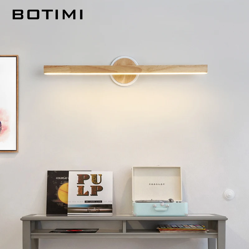 Светодиодная настенная лампа BOTIMI для спальни, современное деревянное бра для зеркала, прикровасветильник ильник с деревянным креплением, лампа для чтения