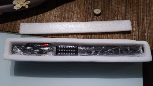 На данный момент звук груб и поставляется с пультом дистанционного управления, который я мог использовать только громкость, так как цифры я не знаю, для чего они предназначены, потому что английские инструкции приходят