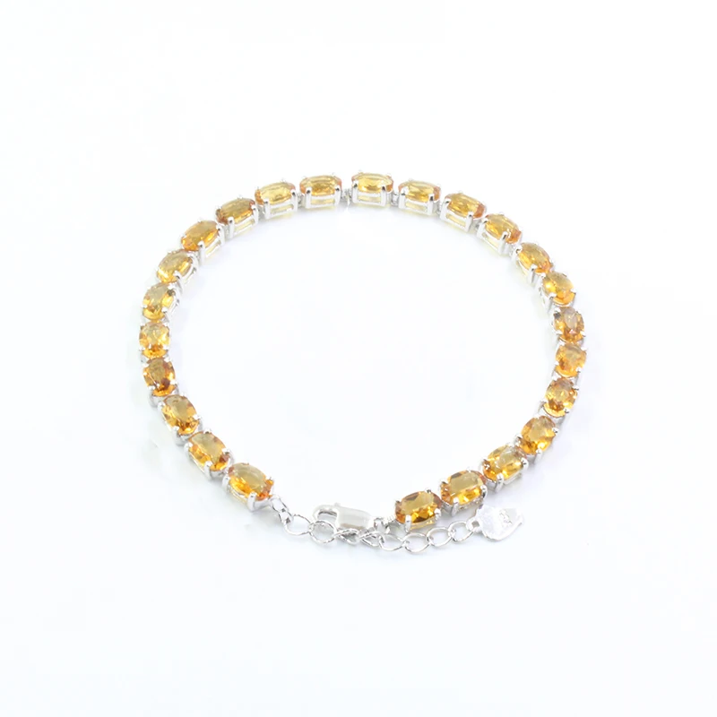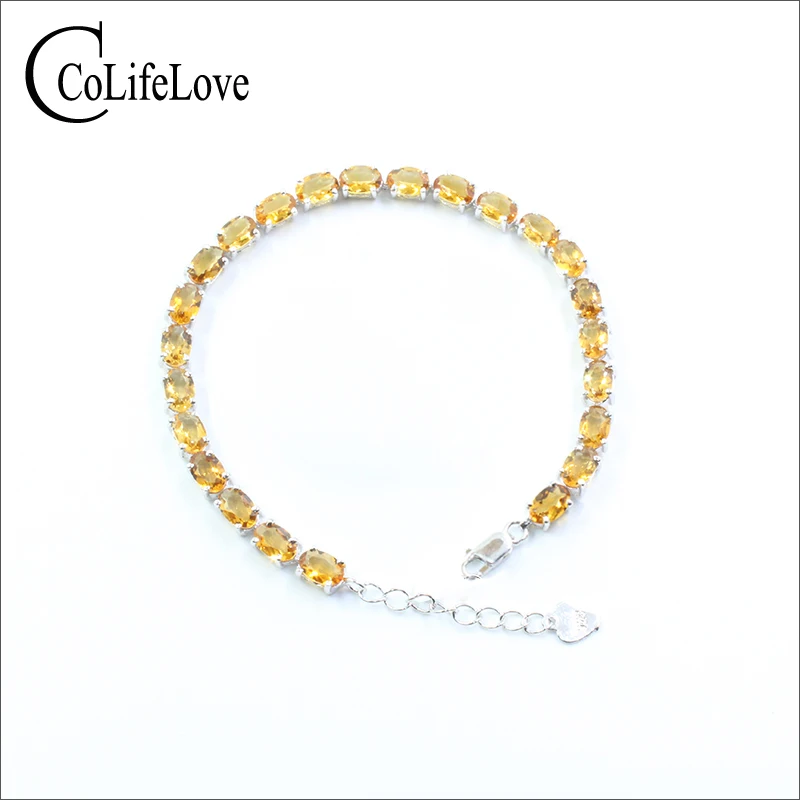 Классический женский браслет для вечеринки, 25 шт., серебряный браслет из натурального цитрина, твердый браслет из серебра 925 пробы для свадьбы