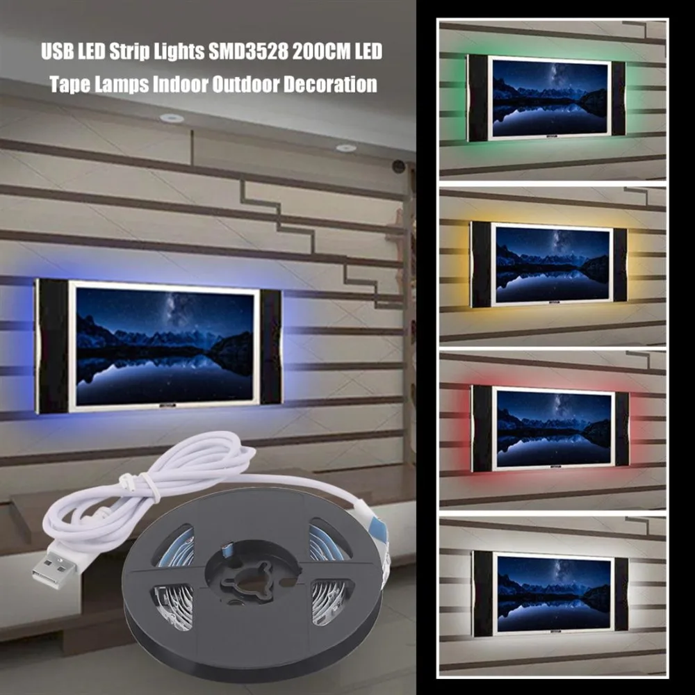 5 в постоянного тока USB Светодиодная лента для ТВ фона освещение Гибкая Диодная лампа лента не Водонепроницаемая 50 см1 м2 м белый красный синий RGB неоновая лента