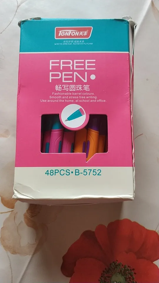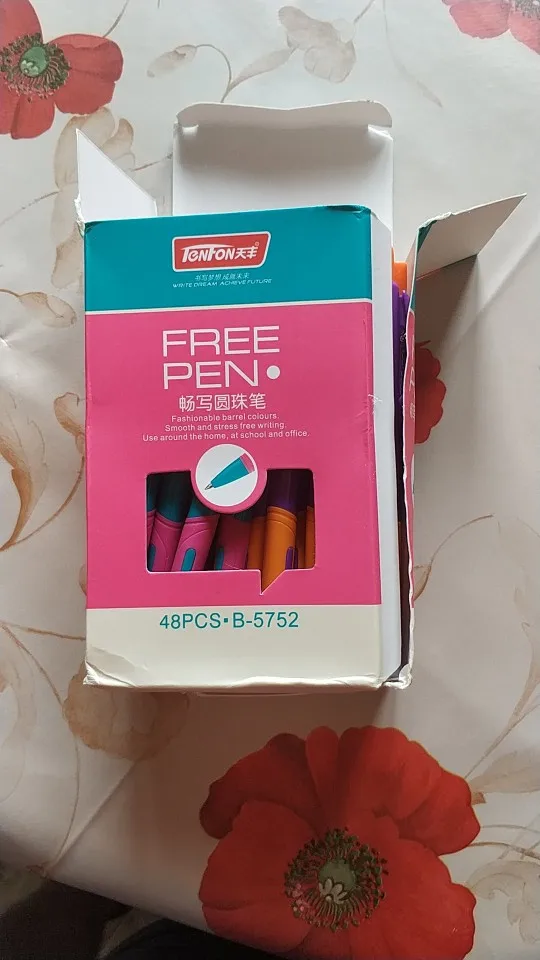 Шариковые ручки отличные. Я их заказываю уже не первый раз. Пишут мягко, пластик ручки хрупкий(колкий). Зажимчик ( за что ручку можно цеплять) хрупкий, может при падении ручки отломиться. Посылка идёт долго. Посылка была упакована в пакет, пупырку, коробка мятая и рваная и у одно ручки сломан зажимчик.