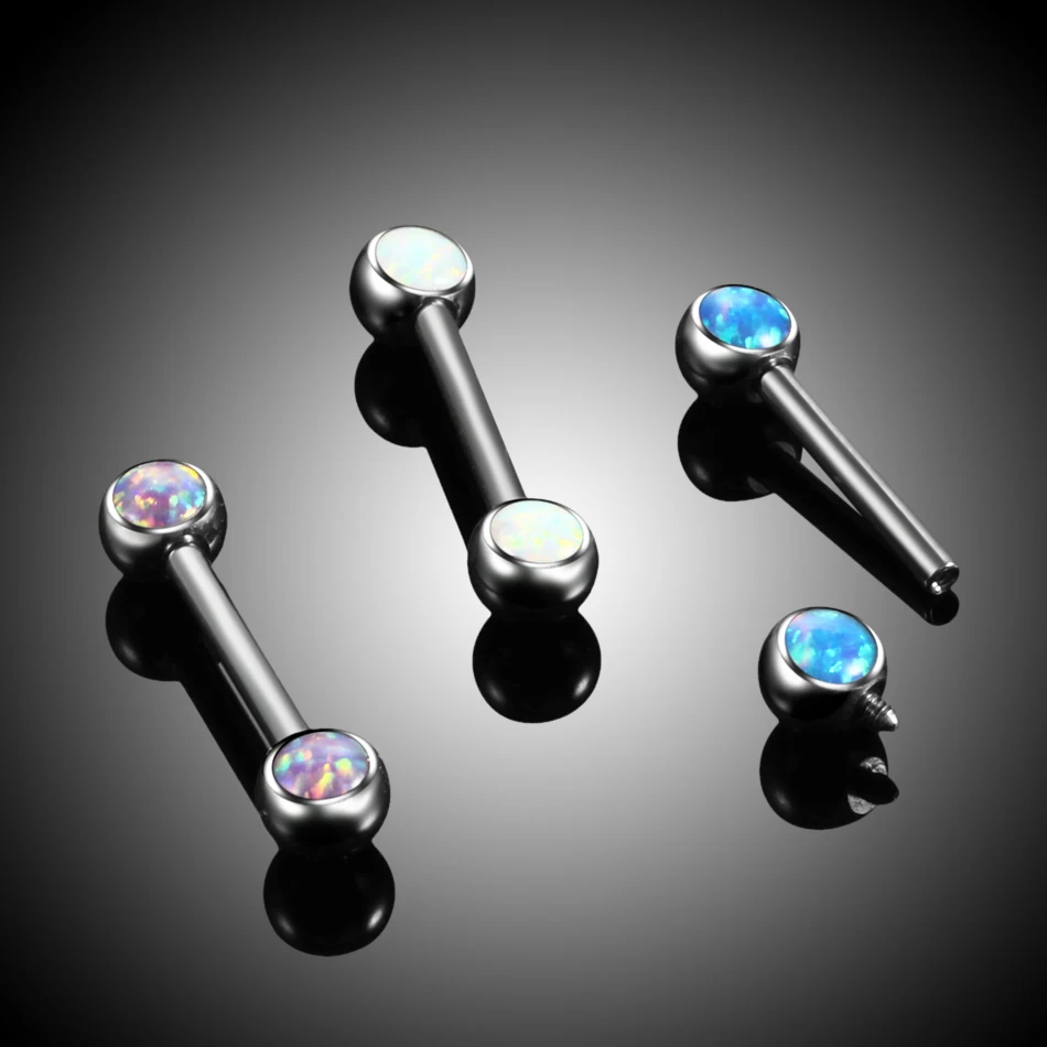 1 шт. 14 г титановый пирсинг сосков опал и Кристалл нипппель слитные стержни внутренняя нить промышленная спираль штанга для языка Пирсинг