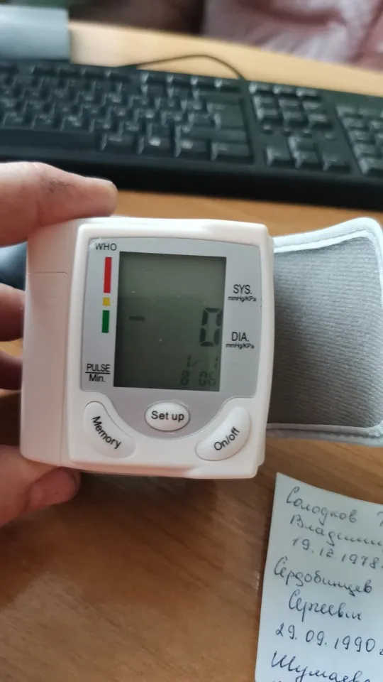 аппарат проверили со всех сторон, показания, разняться с аппаратом на претплечье, пульс показывает точно, а показания дааления зависит как точно вы надели аппарат, и рука на весу или лежит на поверности. Если рука на столе или другой твердой поверхности показания точнее, если на коленке, показания завышены на 5-7 единиц. аппарат одевать только на левую руку и "не дышать" тогда точно покажет, удобно брать с собой, места занимает не больше яблока. пришел за 3 недели в пекете. надо 2 мизинч. батарейки в комплект не входят.