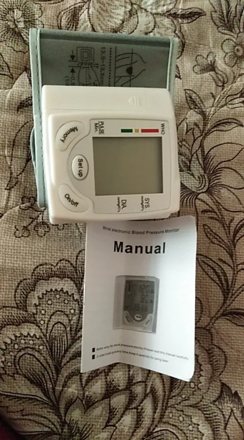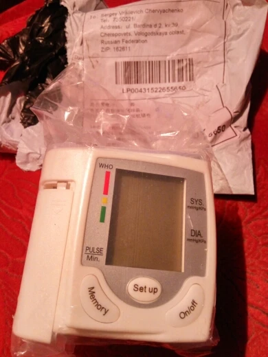Доставка 18 дней до Мск. Прибор съел 2 батарейки ААА и заработал как положено. В пользовании прост и понятен. Благодаря конструкции браслета легко надевается одной рукой. Цифры крупные, чëткие. Очень хорошее приобретение, в том числе для людей старшего возраста.