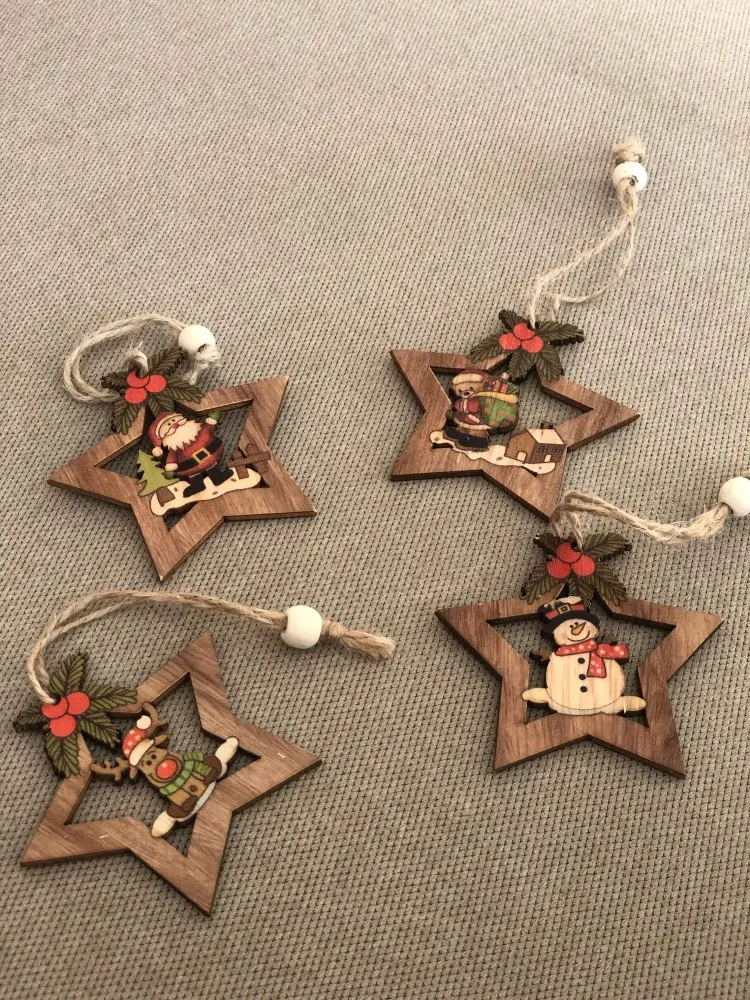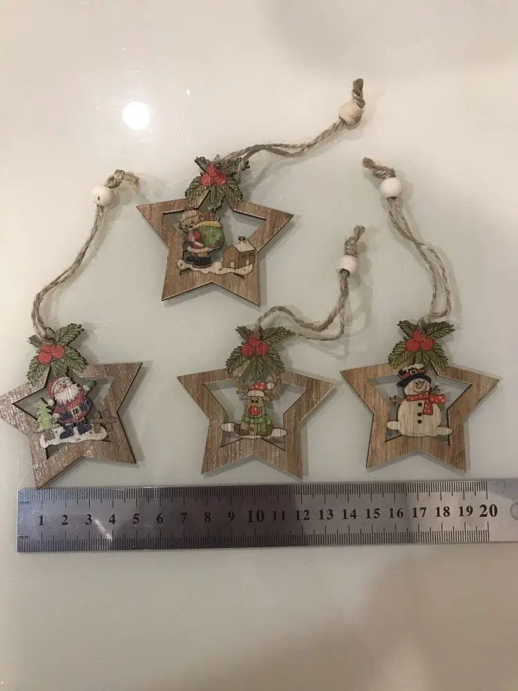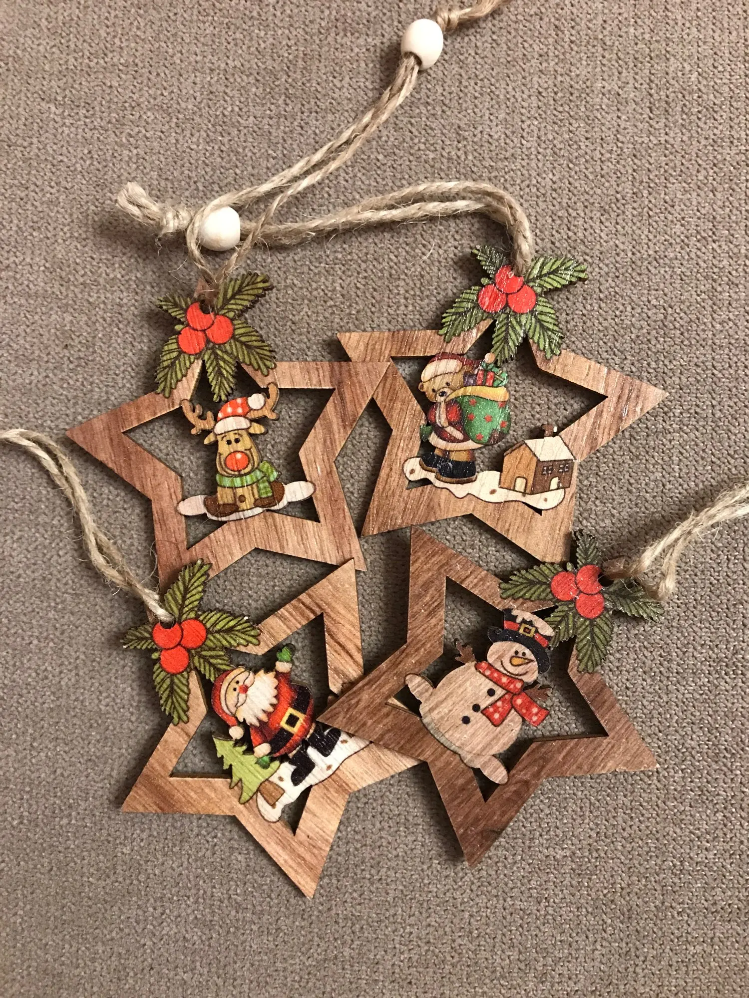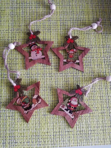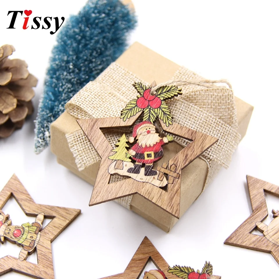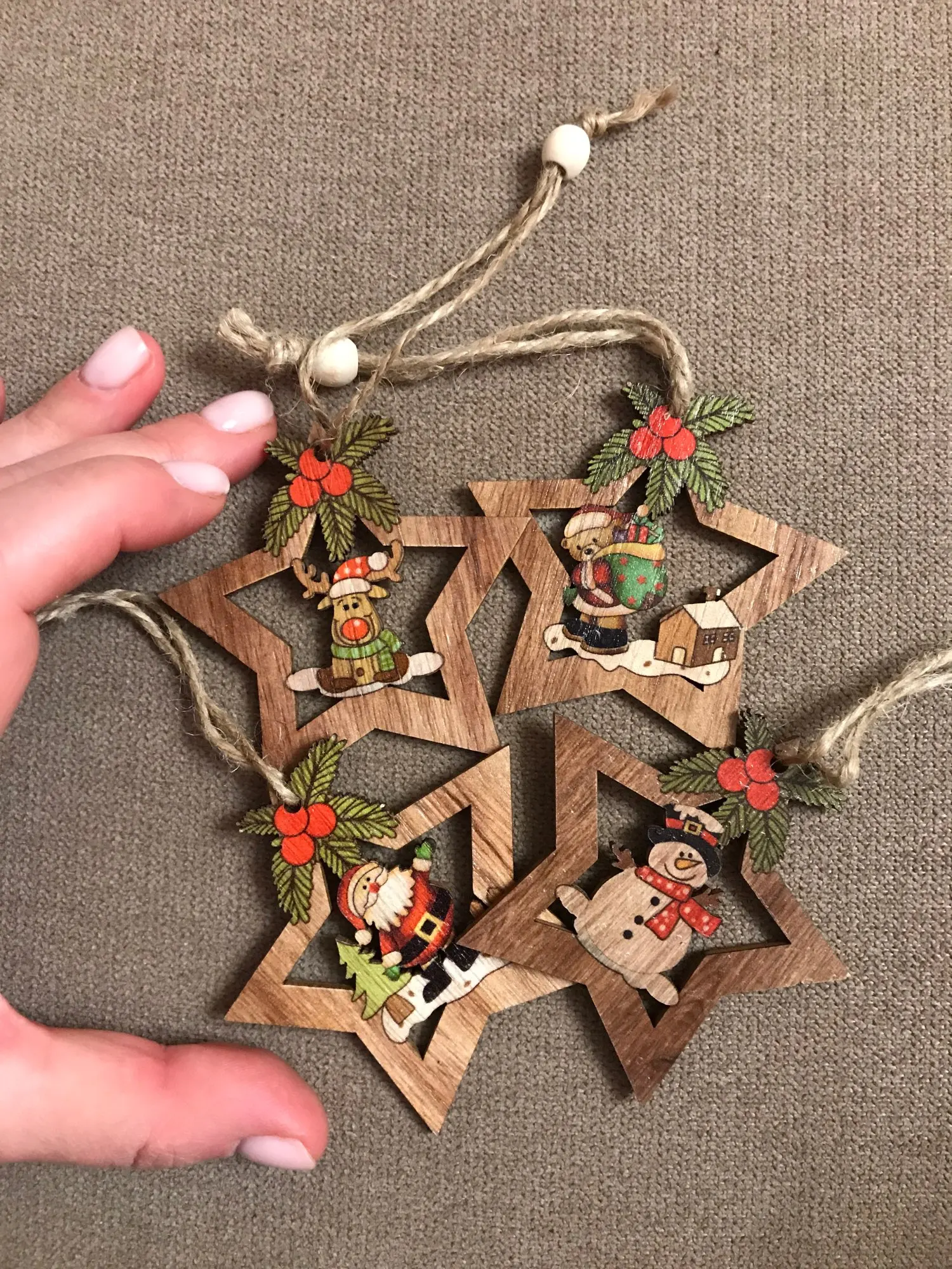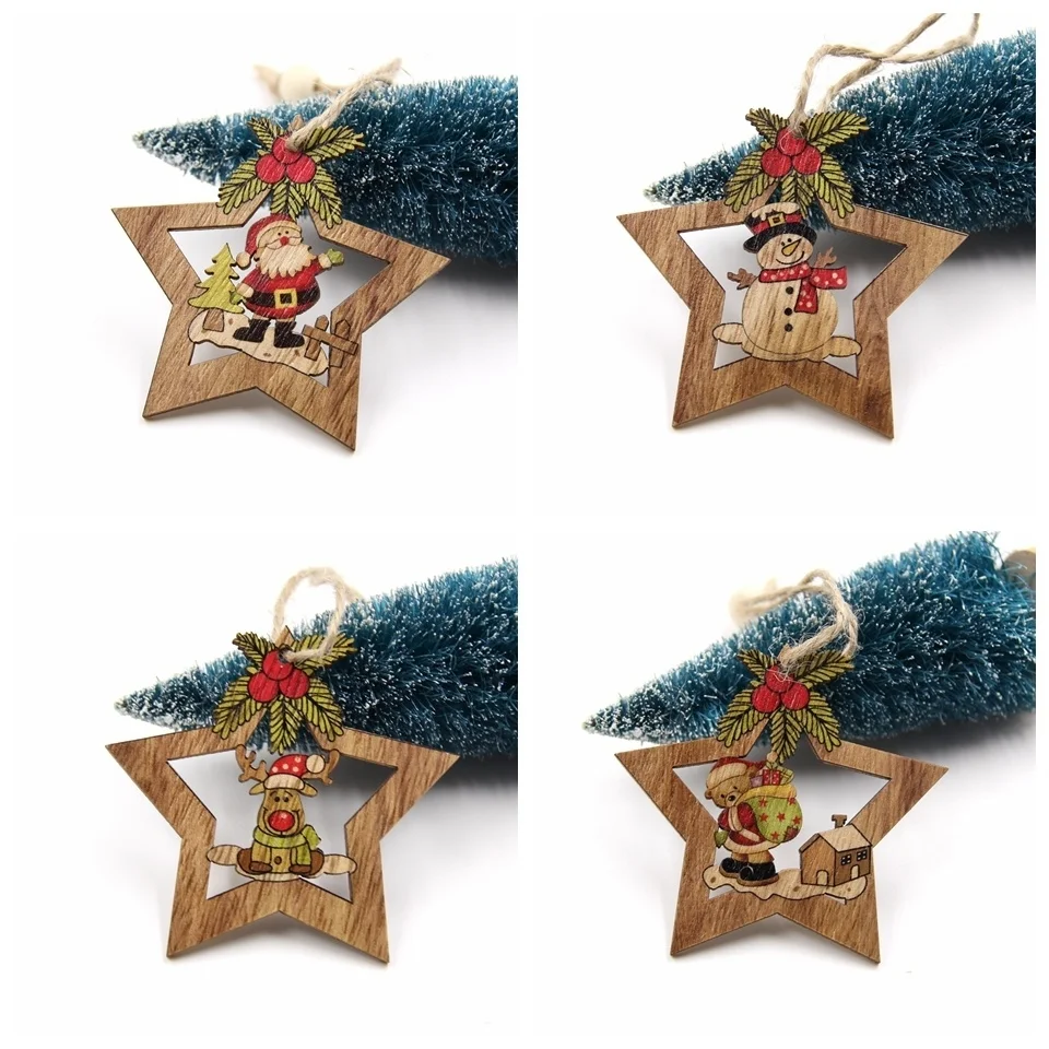 Деревянная подвеска в виде звезды, украшения для рождественской елки, 3 шт.4 шт.