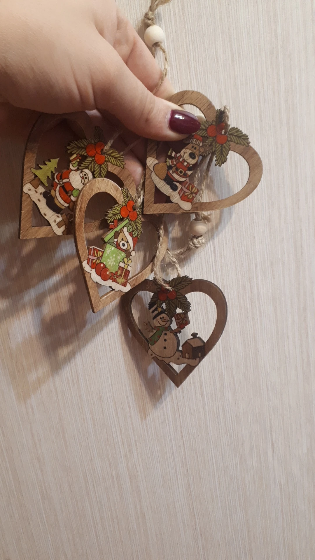 Идеально подходит для украшения дерева. Я захватил 4 разных сердца, и все они очень красивые. Он деревянный и напечатан на рисунке, но выглядит хорошо. Хорошее качество