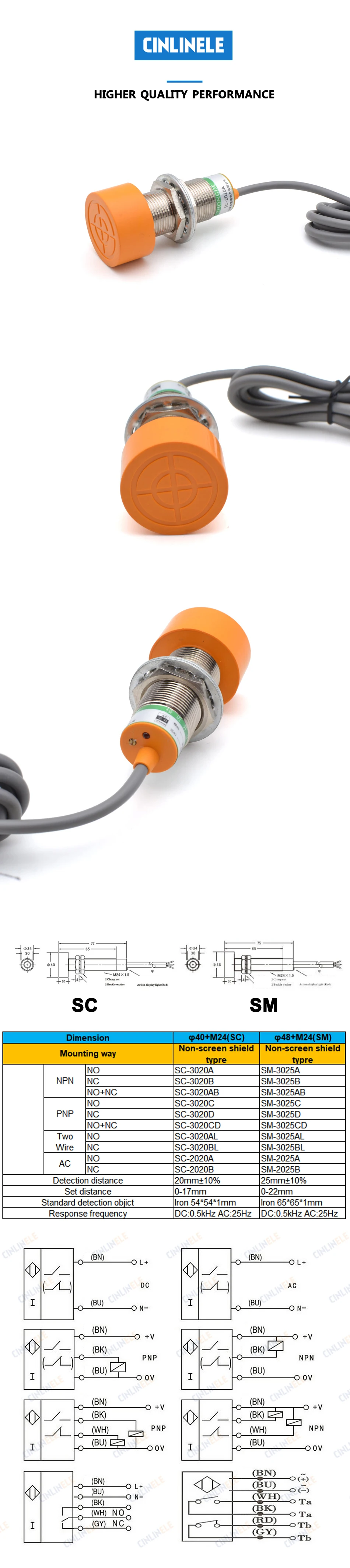 Индукционный металлический датчик M40, M45, 20 мм и 25 мм, идентификационный датчик приближения NPN PNP NO NC, 2 провода