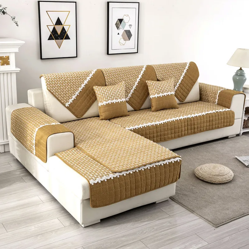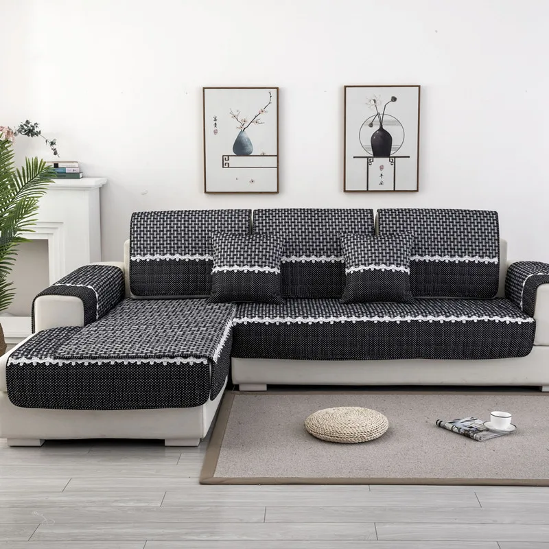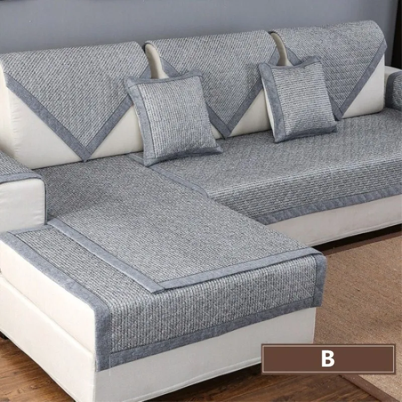 Чехол для дивана из хлопка и льна, однотонный, для гостиной