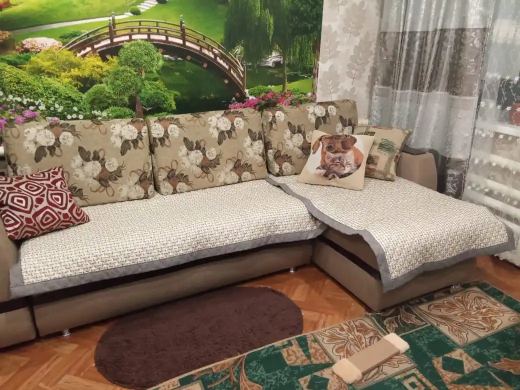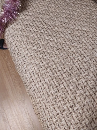 Покрывало на диван полностью соответствует тому, что на фото. Качеством очень довольна,хотя заказ шёл очень долго.