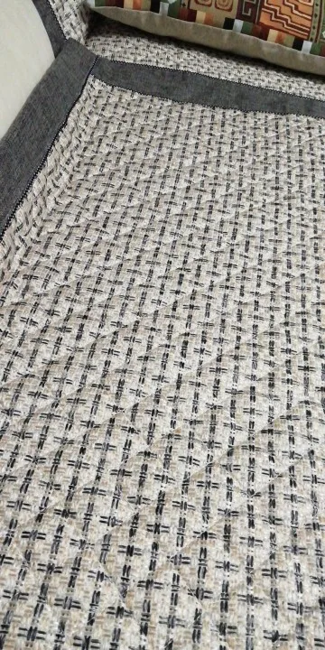Спасибо! Продавца рекомендую. Очень быстрая доставка. Даже не ожидала. Качество хорошее. Лен только окантовка. Сам плед какая то синтетика. Но в целом смотрится хорошо. На обратной стороне ткань с пупырками. Поэтому не скользит.