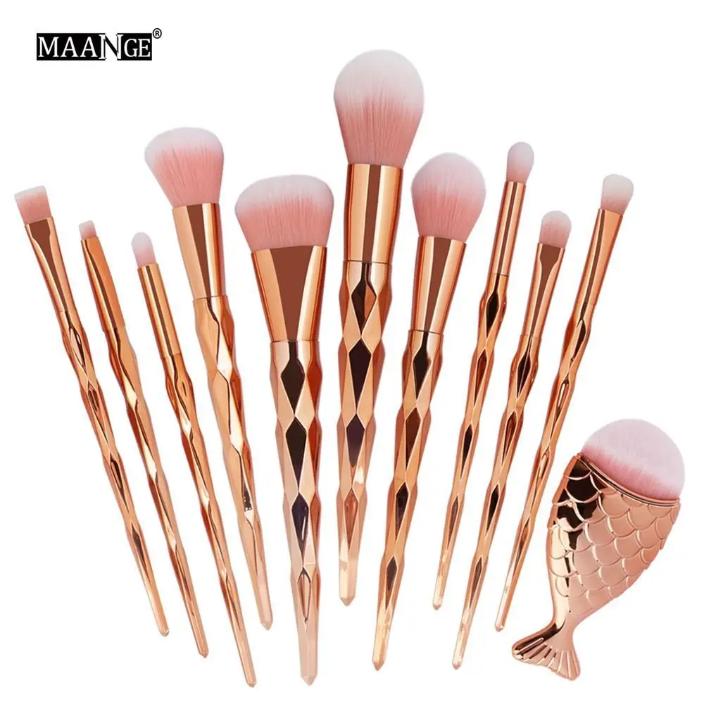 Набор кистей для макияжа из розового золота с бриллиантами, 1 шт.компл., рыбий хвост, образный фундамент пудра, кисти для макияжа