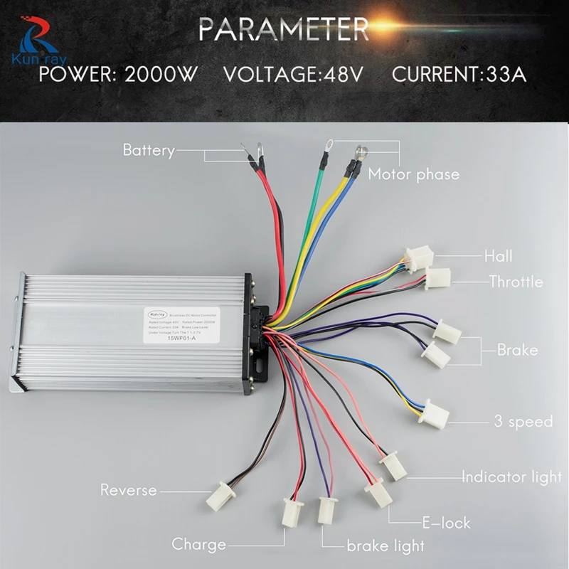 Электрический бесщеточный контроллер KUNRAY 48 в 2000 Вт, регулятор скорости бесщеточного двигателя 33A 15 Mosfet, функция обратного хода для электроскутера