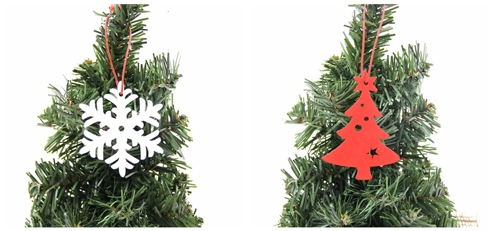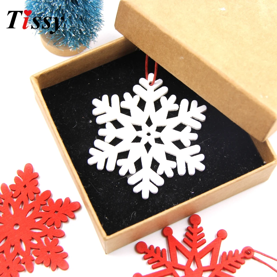 Снежинки Рождественские белые и красные деревянные подвески, украшения, 6 шт.