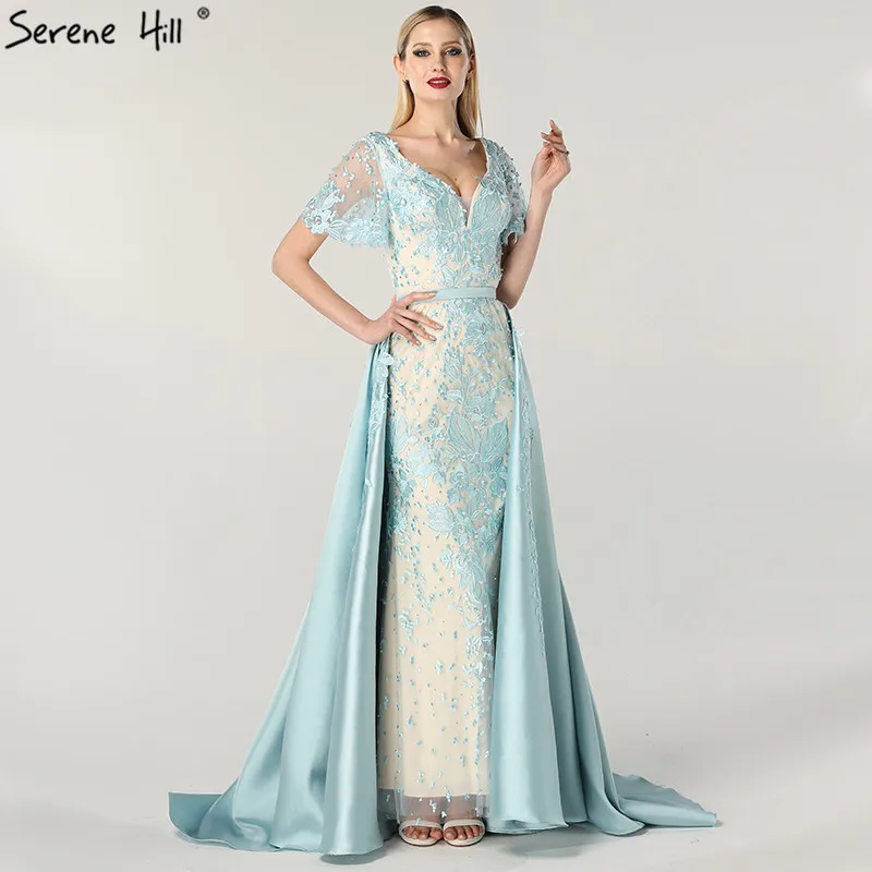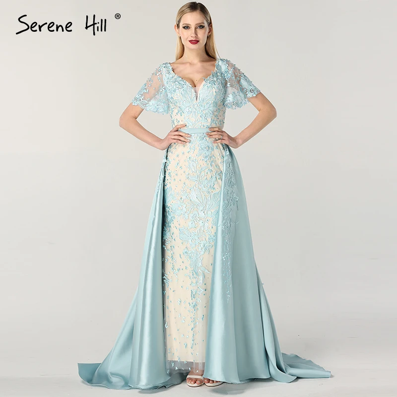 Мятное винтажное вечернее платье с v-образным вырезом и короткими рукавами; Новинка 2021 года; Вечернее платье ручной работы с цветами и шлейфом; LA6605