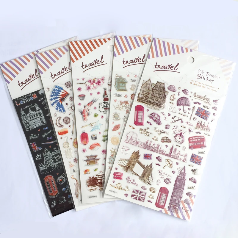1 лист в стиле путешествий Лондон Париж Индия Япония DIY Хрустальная декоративные наклейки, Дневник для телефона для бутылок декоративная этикетка наклейка