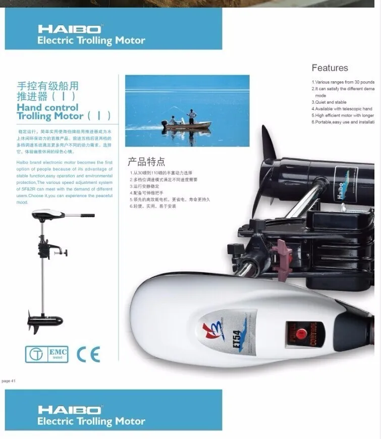 Морской Пропеллер Haibo ET54L работает от батареи, экономит проблемы, прост, экологически безопасен, и имеет меньше шума. Это хороший помощник для рыбаков, не мешая рыбе в рыбацкой области.