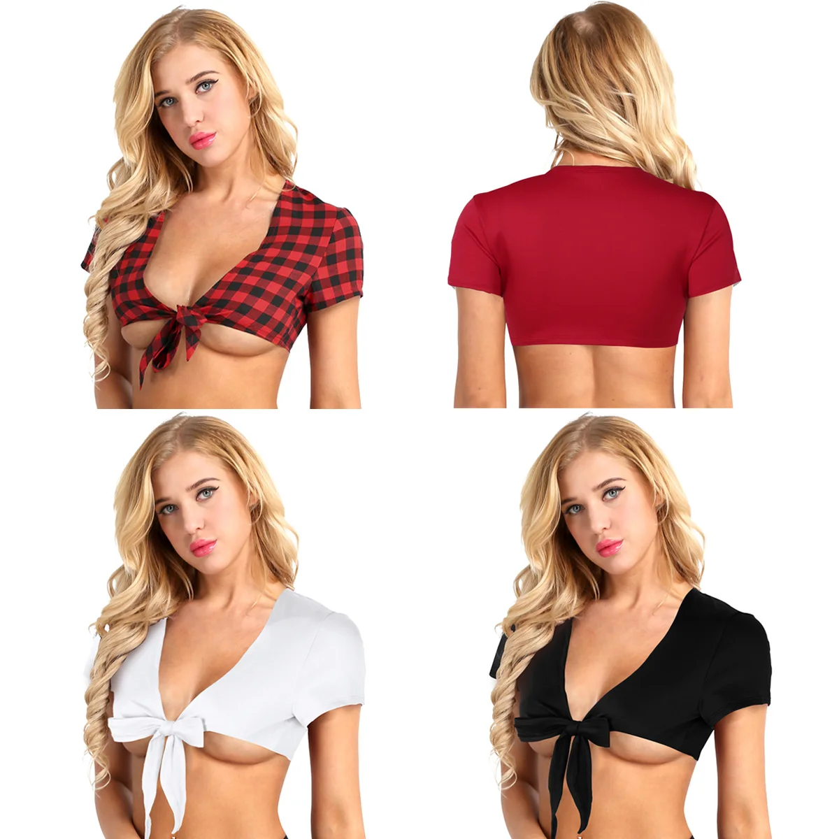 Женский короткий кардиган с глубоким V-образным вырезом и завязкой спереди, укороченный топ, пикантная рубашка, пикантные костюмы, ночная Клубная одежда