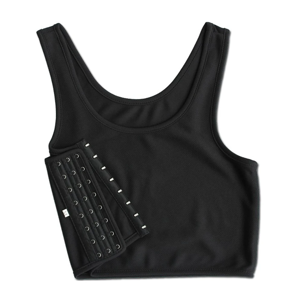 Корсет для лесбиянок Tomboy, повседневный кроп-топ, облегающий бюстгальтер, дышащая нагрудная майка, черный белый короткий топ с пряжкой, S-L