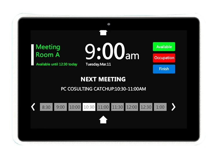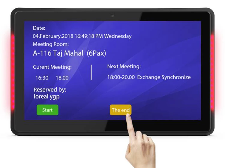 10 точек емкостный сенсорный экран Включение/выключение таймера Идеально подходит для конференц-зала, системы бронирования Android, экран IPS, встроенный микрофон, динамик, камера, Wi-Fi/ethernet для подключения к Интернету 24 часа 7 дней непрерывная работа